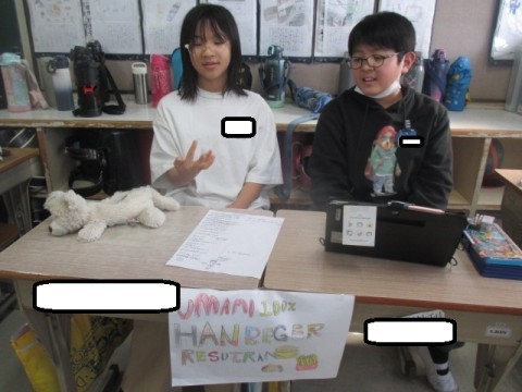 ハンバーグやさん,お寿司屋さんなどのお店やさんごっこをしています。