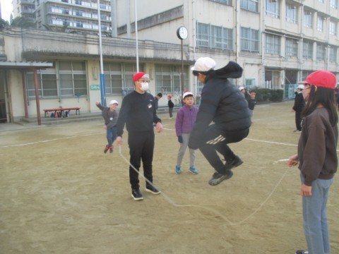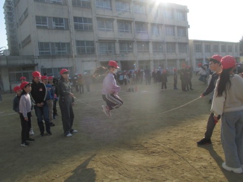たてわり活動 1 公開日 2026/02/02 更新日 2026/02/02 児童会・委員会活動 2月2日(月)なかもず たのしもうDAYの取り組みです。たてわり活動で「おおなわとび大会」を行います。今日は全員で運動場に出て練習をしています。 +7