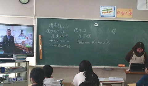1組の外国語では,私の夢というテーマについて,I like ~,I want  to~などの構文を使って学習していました。