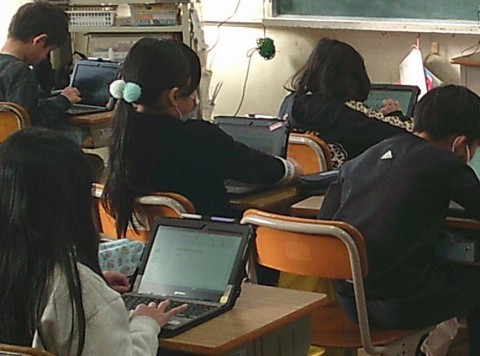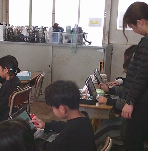 3組の総合では,発表に使うパワーポイントの使い方の練習に取り組んでいました。