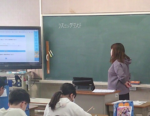 3組の外国語では,リスニングテストに取り組んでいました。