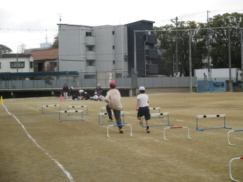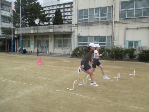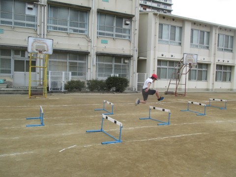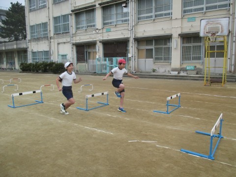 体育はハードル走の練習をしていました。