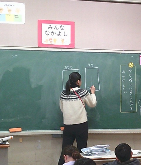 1組の国語では,かくれていることばをみつうけようというめあてで学習していました。