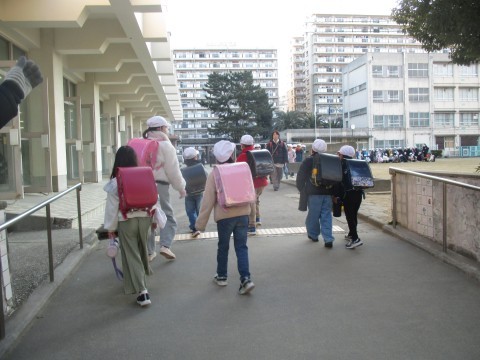 寒く冷たい朝です。こどもたちは元気に登校しています。