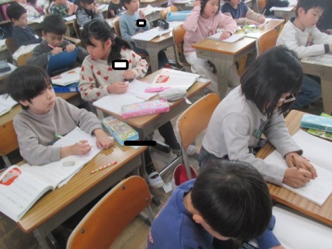 1組の国語では,新出漢字の学習に取り組んでいました。