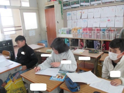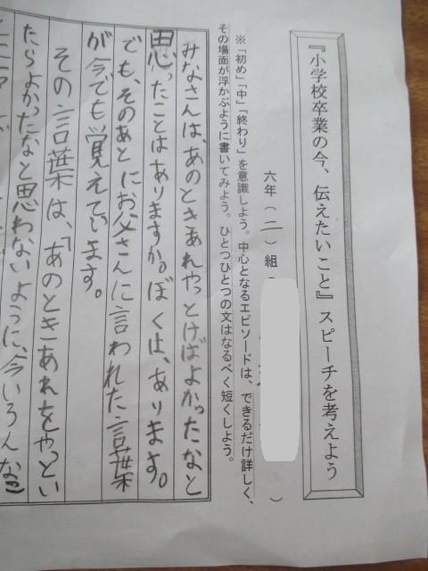4時間目です。「小学校卒業の今,伝えたいこと」をスピーチしように取り組んでいます。