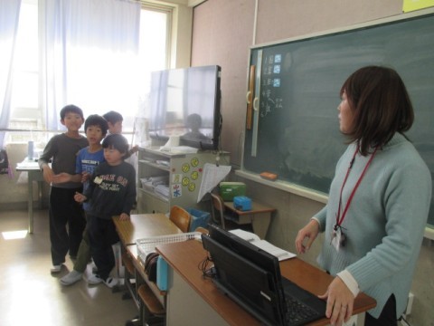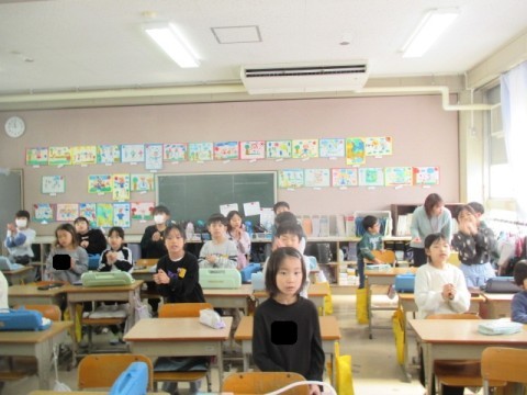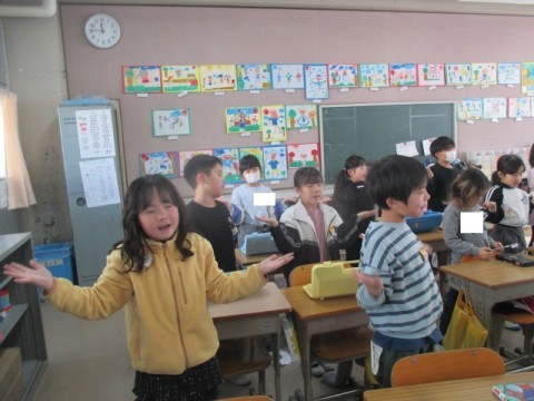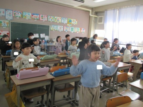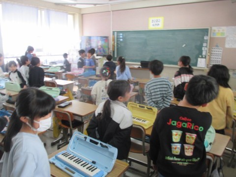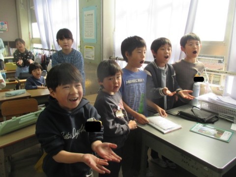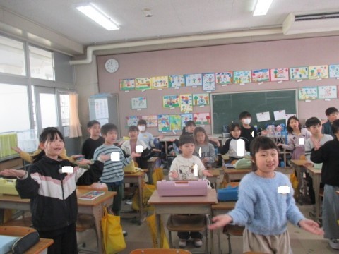 ♪「ありがとうのうた」を手話を交えて笑顔で歌っています。