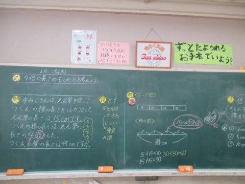 3年 学習のようす 3 公開日 2026/02/19 更新日 2026/02/19 3年生 2月19日(木)3組の図書室に行く前のようすです。算数では「4倍の長さの求め方を考えよう」に取り組んでいます。又休み時間に「折紙会社(係)の作品を見せてくれました。800枚の小さな折り紙で作った作品です。 +7
