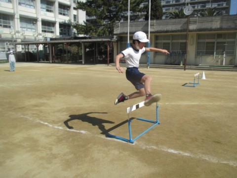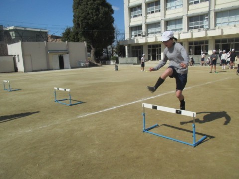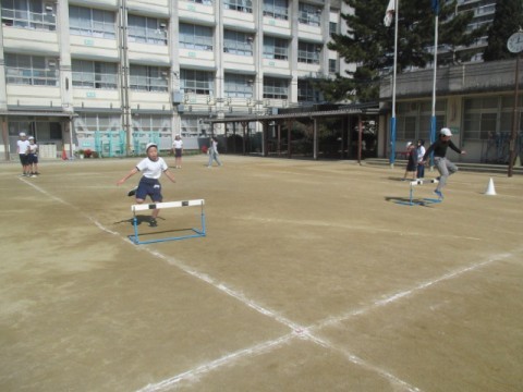 体育ではハードル走に取り組んでいます。