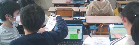 2組の特別活動では,学級の班の仕事についてタブレットを使ってまとめる学習をしていました。