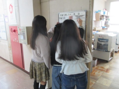 ホワイトボードに欠席人数を書きに来ています。