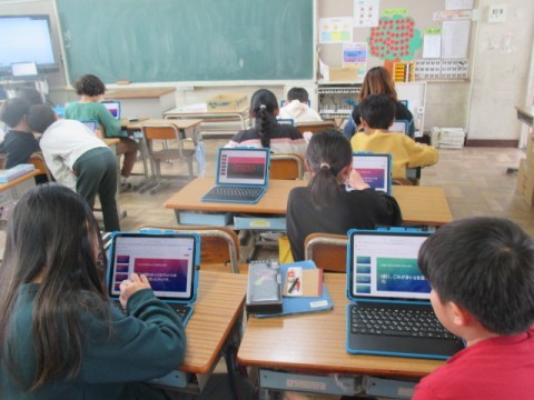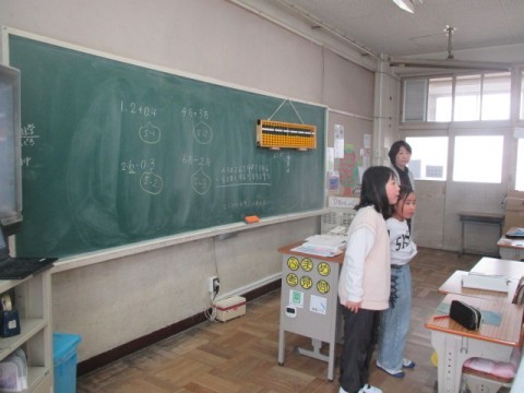 3年 学習のようす 1 公開日 2026/02/24 更新日 2026/02/24 3年生 2月24日(火) 1組の算数は「そろばん」の学習です。1.2+0.4, 4万+3万,2.6-0.3の計算に取り組みました。総合では学年で発表をするときのパワーポイント作りを班で取り組んでいます。 +7