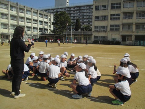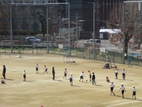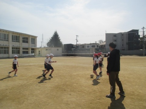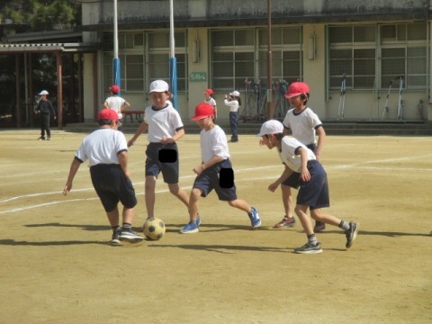 体育では「ラインサッカー」に取り組んでいます。