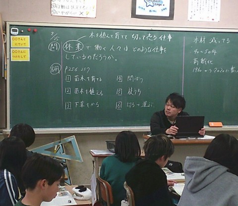 1組の社会では,林業で働く人々はどのような仕事をしてるかについて学習していました。