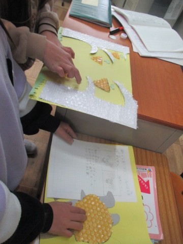 3年 学習の様子2 公開日 2026/02/25 更新日 2026/02/25 3年生 2月25日(水)2組の国語では,お気に入りの場所を教えますという単元の学習に取り組んでいました。図工は「切りとり 紙はんが」に取り組んでいます。今日は「版」を作っています。 +5