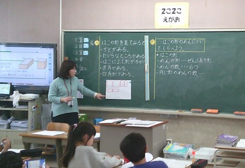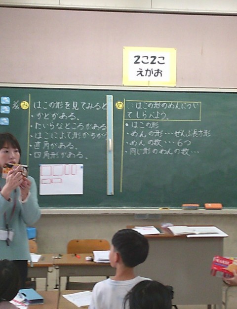1組の算数では,はこの面の形について学習していました。