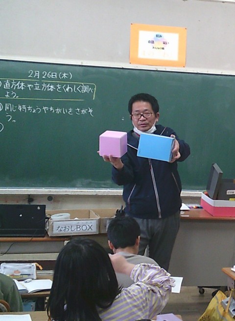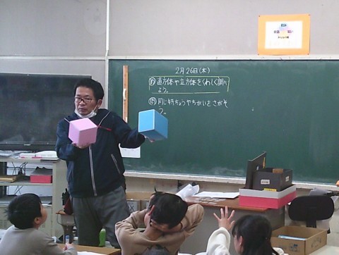 3組の算数では,直方体や立方体の特徴を詳しく調べる学習に取り組んでいました。
