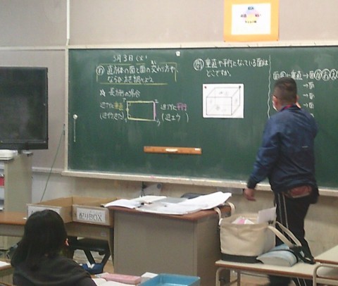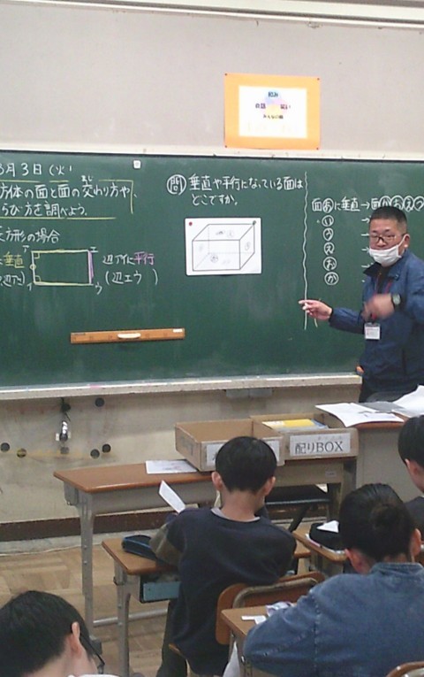 3組の算数では,直方体の面と面の交わり方や並び方を調べる学習に取り組んでいました。
