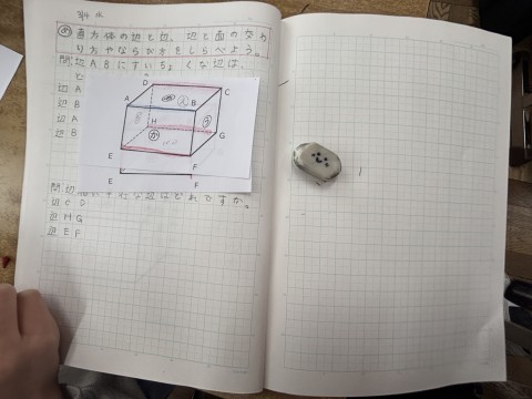4年 学習のようす 2 公開日 2026/03/04 更新日 2026/03/04 4年生 3月4日(水) 2組の算数では「直方体の辺と辺,辺と面の交わり方やならびかたをしらべよう」に取り組んでいます。体育は最初に5分間走をしています。そのあと,ラインサッカーに取り組んでいます。 +7