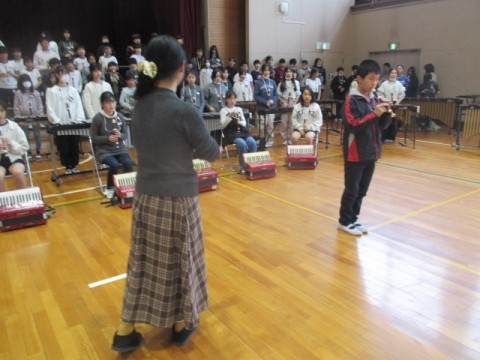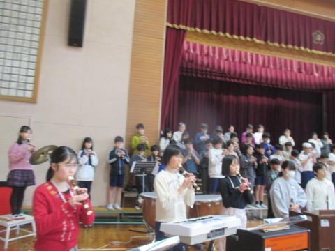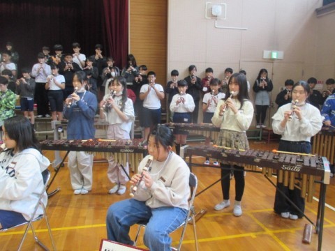 6年 学習のようす 5 公開日 2026/03/04 更新日 2026/03/04 6年生 3月4日(水) 学年で「6年生を送る会」で発表する♪「メヌエット」のリコーダー奏と合奏「ファランドール」の練習をしています。 +7