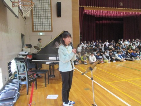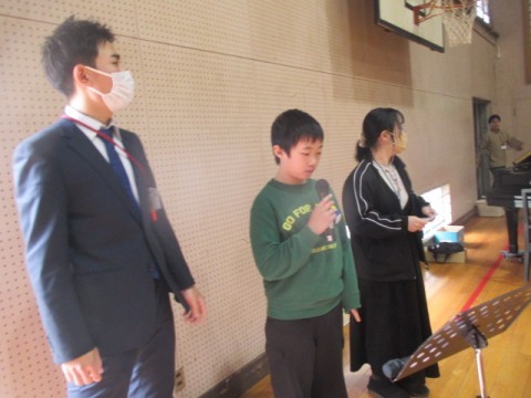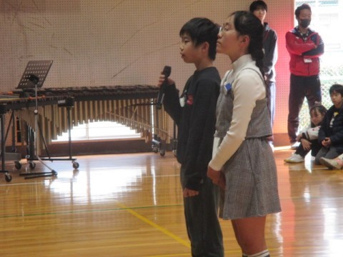 6年生を送る会 公開日 2026/03/06 更新日 2026/03/06 児童会・委員会活動 3月6日(金)2時間目に「6年生を送る会」を行いました。5年生の代表委員会が中心となり会を進めます。1年生から5年生は6年生に歌や演奏のプレゼントをしました。6年生からは「学校をきれいに」と感謝の気持ちをを込めて作った「ぞうきん」のプレゼントと,リコーダー奏「メヌエット」と合奏「ファランドール」のお礼のプレゼントがありました。5年生のリコーダー奏「威風堂々」により6年生が入場しました。 +6