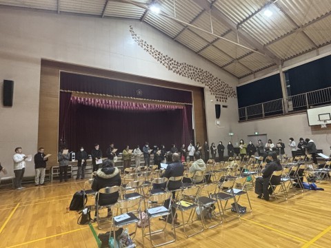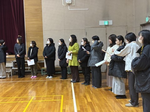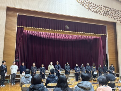 PTA総会 公開日 2026/03/06 更新日 2026/03/06 校長室 3月6日(金)本日19時より,本校体育館にてPTA総会を行いました。新旧役員の方々の挨拶や学校からの行事説明などがありました。本年度の役員のみなさま,PTA活動ありがとうございました。 +7