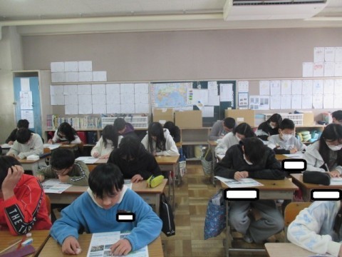 6年 学習の様子 公開日 2026/03/09 更新日 2026/03/09 6年生 3月9日(月)1組の外国語では,プリント問題に取り組んでいました。理科最後の単元「自然と共に生きる」ではテストをしていました。 +7