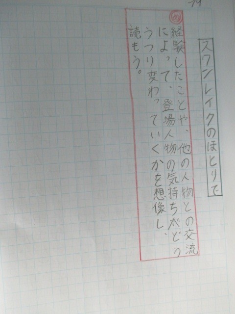 めあては「経験したことや他の人物との交流によって登場人物の気持ちがどう変わっているかを想像して読もう」です。