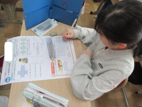 算数「直方体と立方体」のテストをしてます。