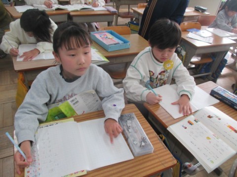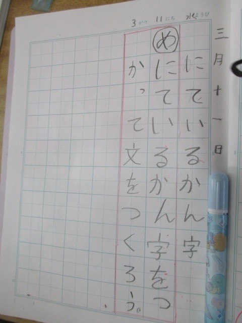 1年 学習のようす 2 公開日 2026/03/11 更新日 2026/03/11 1年生 3月11日(水) 2組の国語「にている かん字」の学習です。今日のめあては「にて いるかん字」をつかって文をつくろう」です。 +7