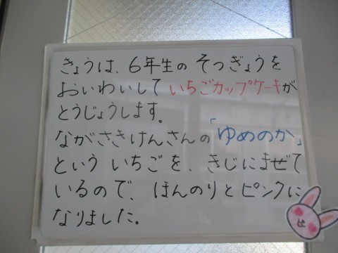 いちごのカップケーキが登場しました。6年生は「イェ~イ!!」と大喜びです。