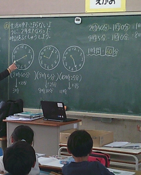 2組の算数では,時間の問題の復習に取り組んでいました。