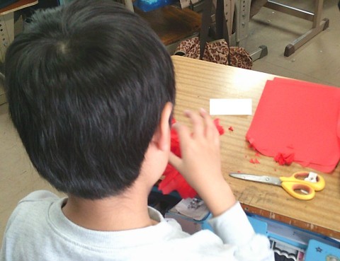2組では,アーチづくりのための花を作っていました。