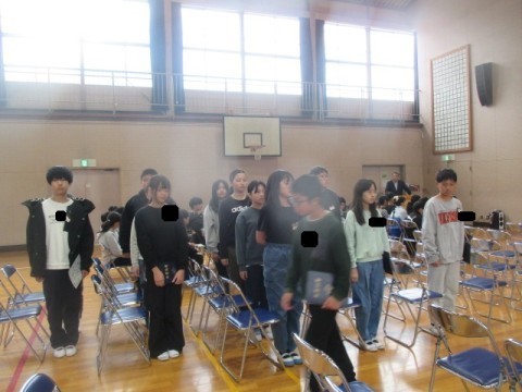 卒業式予行 3 公開日 2026/03/13 更新日 2026/03/13 6年生 3月13日(金) 退場の後,もう一度学年で集まり,校長先生からのお話や学年主任の先生から,式についての気をつけたいことなどのお話がありました。 +7