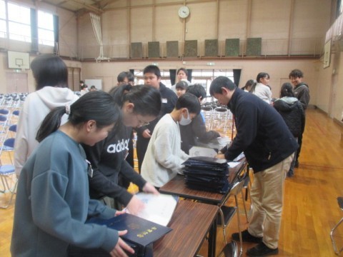 体育館での卒業式の練習が終了しました。