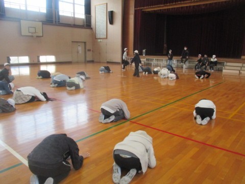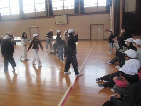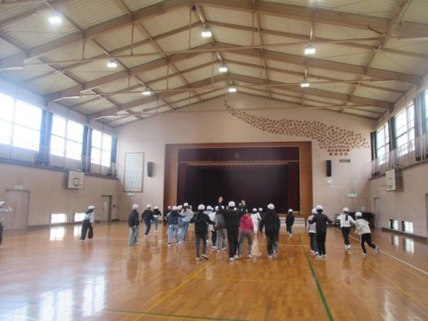 4時間目はお楽しみ会をしています。体育館で「だるまさんの1日」をしていました。そのあと,みんなでドッジボールをするようです。