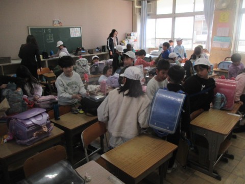 2組は帰りの支度をしています。