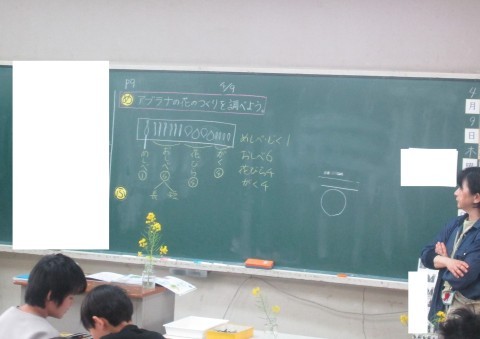 5年生の理科では,アブラナの花のつくりについて学習していました。