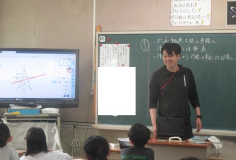 6年生の算数では,対応する点から対称の軸までは等しいことや対応する点を結ぶ直線と対象の軸は垂直であることについて学習していました。