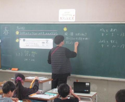 2年生の算数では,2ケタのたし算の学習に取り組んでいました。