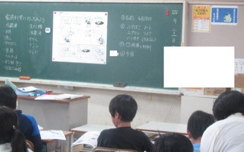 5年生の家庭科では,今後の家庭科室での学習についてお話を聞いていました。