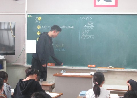 4年生の算数では,3ケタ×3ケタの筆算の学習に取り組んでいました。