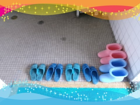 6年生の階のトイレのスリッパです。きっちりとそろっていて気持ちいいです。