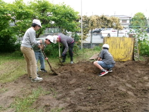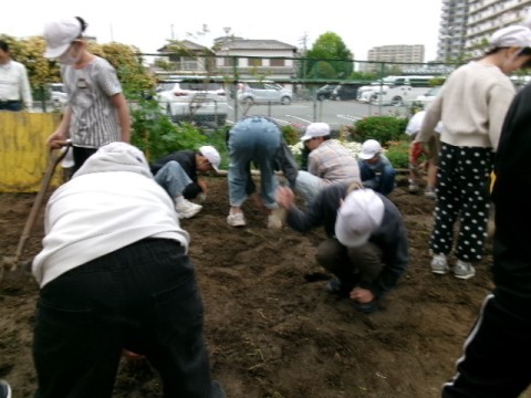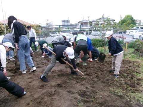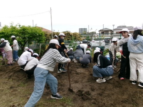 1年生のさつまいもの苗植えに向けて,6年生が鍬やスコップを使って,一生懸命に畑の土を耕しています。最高学年として,やさしく頼もしい姿が見られました。