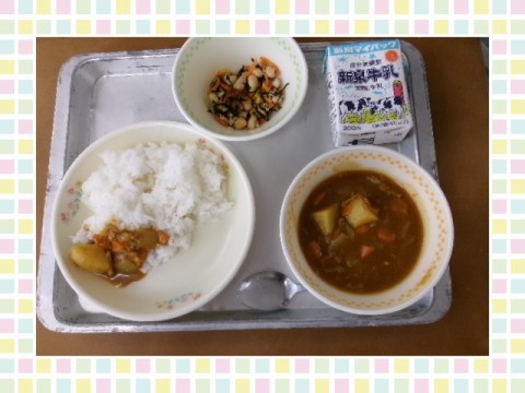今日は,こどもたちの大人気のカレーライスです。たくさん食べてね。