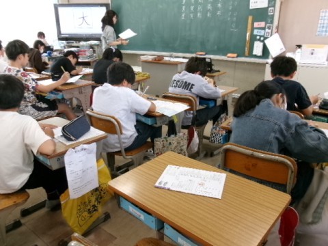 書写プリントに,漢字を丁寧に一文字づつ書いています。