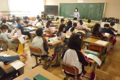 3組は学級活動,4組は国語で新出漢字の学習をしていました。