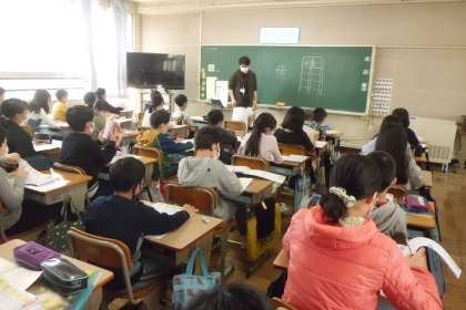 1組は特活で,高学年として身に付けてほしいことについて話を聞いているところでした。4組では漢字ノートの使い方について説明を聞いているところでした。