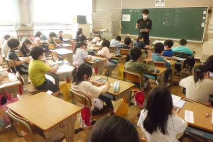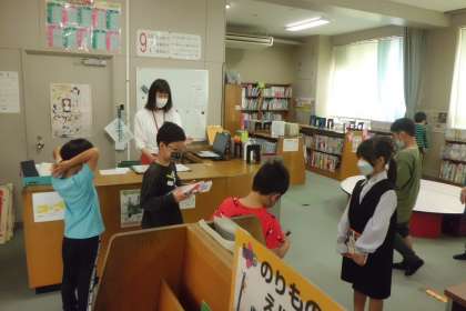 3組は特活で,日直のカードを作っていました。4組は図書で,本を借りているところでした。