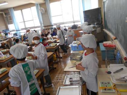 給食開始1 公開日 2022/04/13 更新日 2022/04/13 校内情報(中百舌鳥小) 本日から2〜6年生の学校給食が始まりました。(1年生は15日からです)しっかり手を洗って準備をしています。